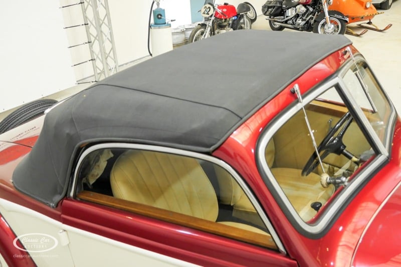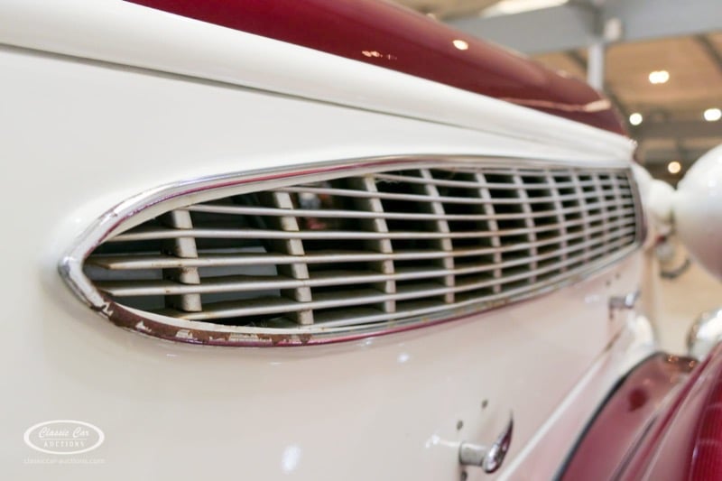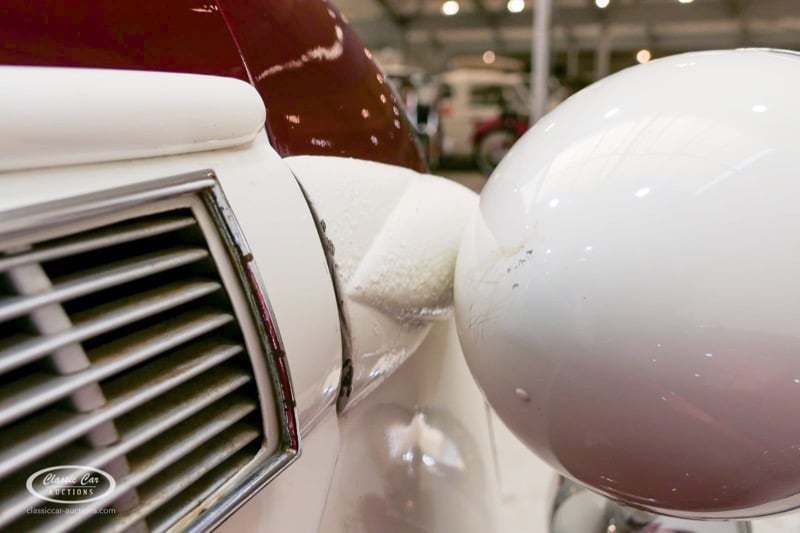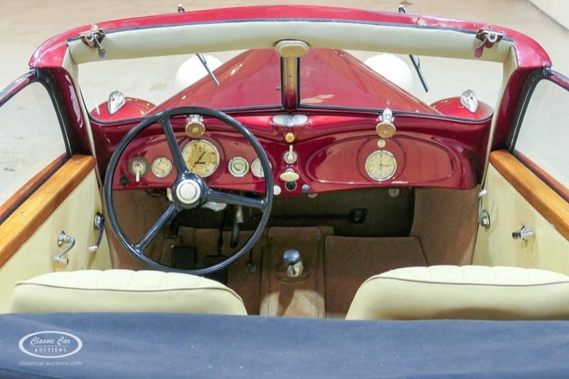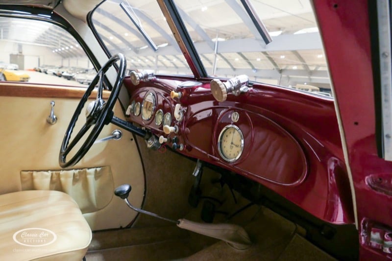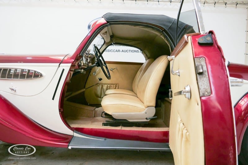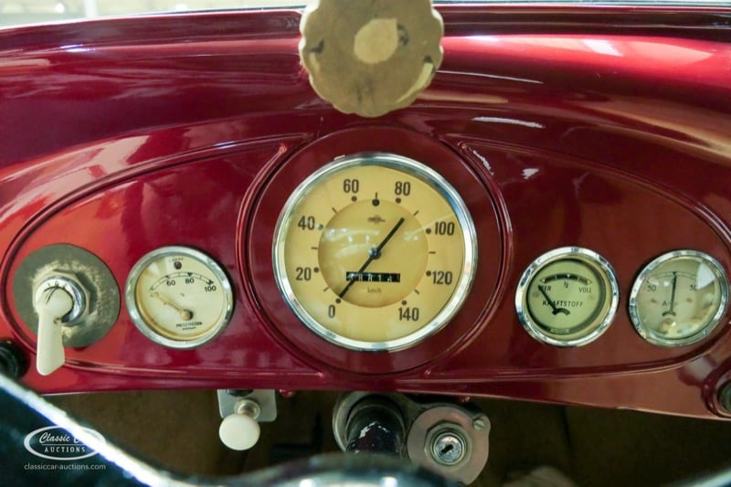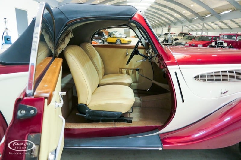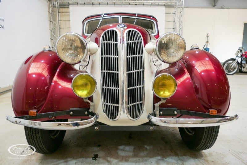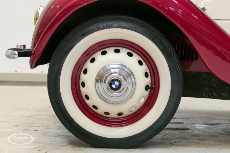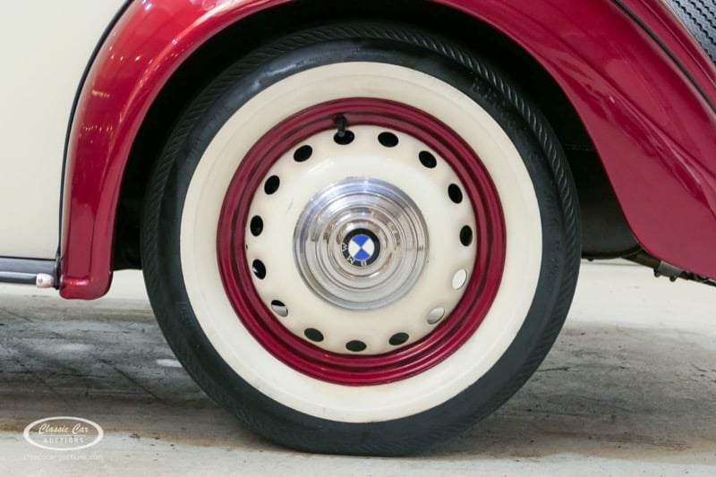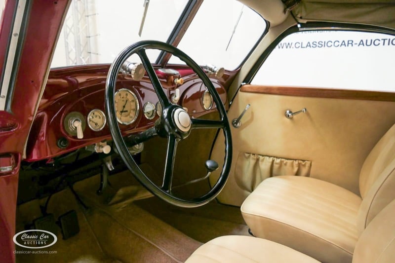 Deze BMW 326 roadster heeft een zeer rijke historie. In 1936 is hij gebouwd door de bekende carrosserie bouwer Drauz. Drauz bouwde auto’s naar wens van de klant om naar roadsters of convertibles. Tijdens de oorlog heeft hij in Duitsland gereden, maar is in de jaren daarna geëxporteerd naar Chili. Daar heeft de dochter van de huidige eigenaar de wagen ontdekt in de jaren 80 en vanuit Chili geïmporteerd naar Belgie. De huidige eigenaar heeft de wagen gerestaureerd, wat geheel gedocumenteerd is doormiddel van een boekwerk aan facturen, onderzoek en foto’s. Ook zit er een technisch handboek bij. Na restauratie is de auto op Belgisch kenteken gezet en is hij inmiddels ruim 40 jaar in het bezit van dezelfde eigenaar. Deze heeft de auto in een privécollectie gehouden en bij gelegenheid een toer mee gemaakt. De auto bevindt zich dan ook in een rijdende staat. Zowel het interieur als het exterieur zien er over het algemeen netjes uit. Om een goed beeld van de auto te krijgen adviseren wij u naar een van onze kijkdagen te komen.