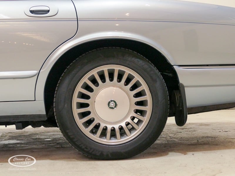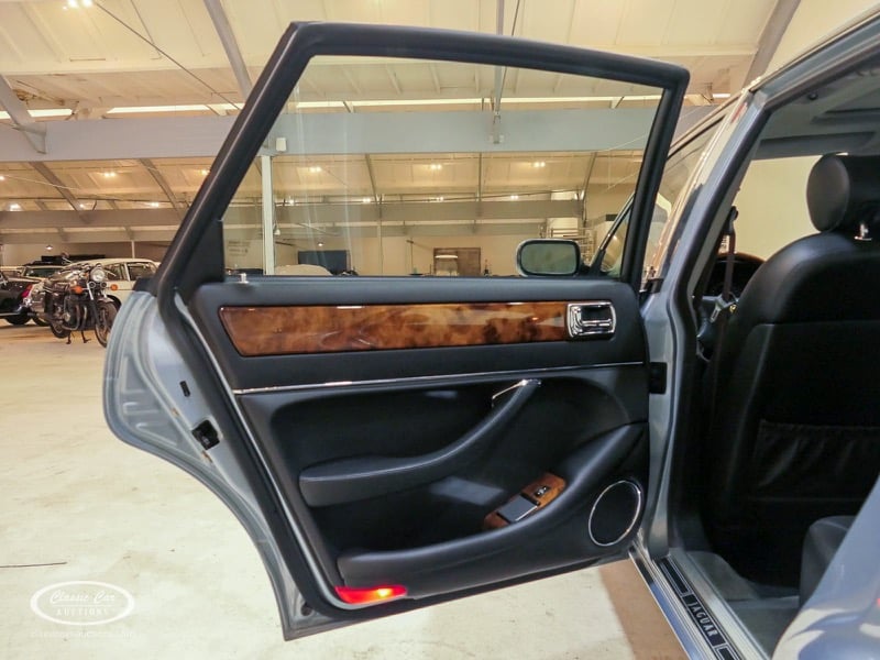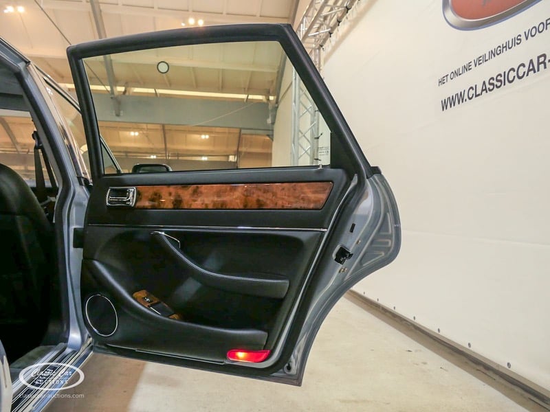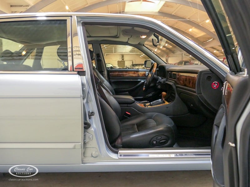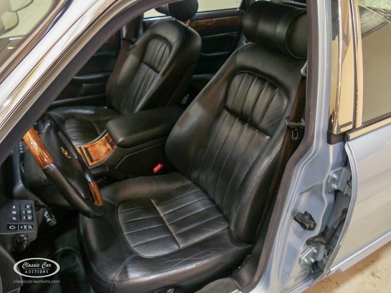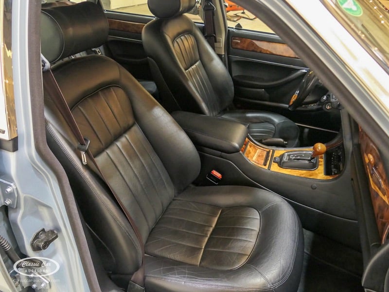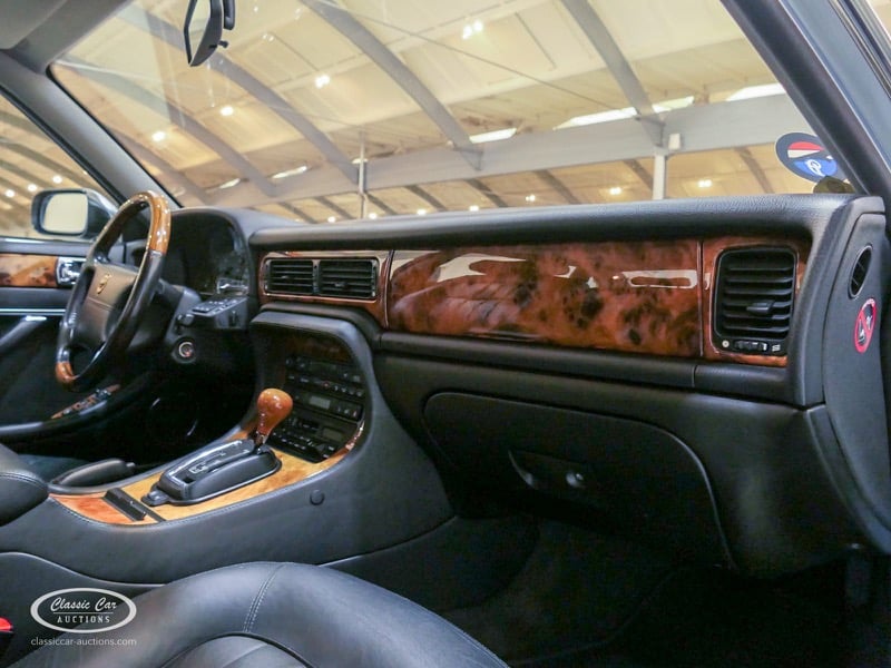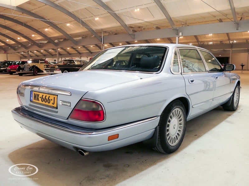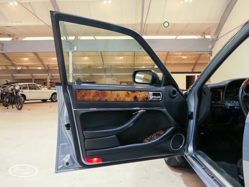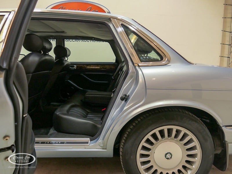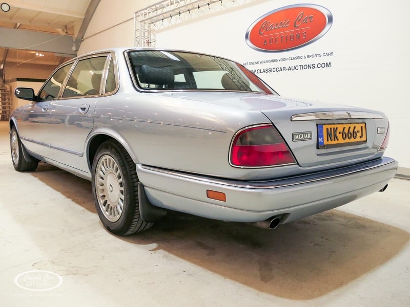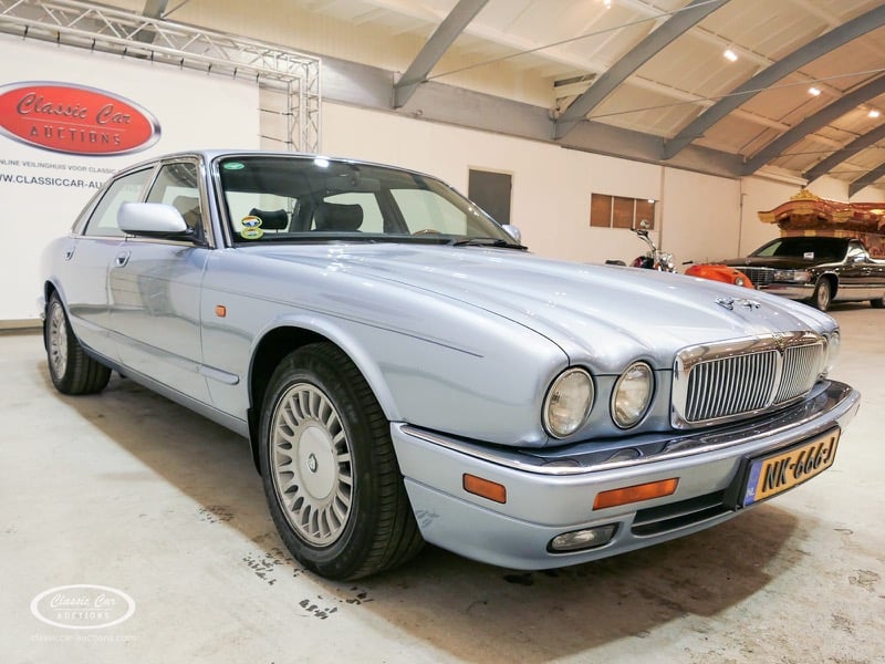 The Jaguar X300 was the first Jaguar XJ produced under Ford ownership. In the design of this model, the emphasis was on build quality and reliability, which Ford achieved by extensively renovating the Jaguar factory and equipping it with the latest technology. This copy in light blue metallic over black leather was delivered in Germany in 1997 and brought to the Netherlands in 2017 with 132,000 kms. The previous owner drove the Jaguar daily and had it meticulously maintained, such as replacing the shock absorbers. The 4.0L six-in-line delivers 241hp and is linked to an automatic gearbox. This is the luxury Sovereign version that has ten-way electrically adjustable seats with memory function, cruise control, automatic climate control and chromed trims all around. In addition, this model has an electric sliding roof. The XJ is in a neat condition, with only minor signs of wear. The folder with board documents is present. To get a good picture of the lot, we advise you to come to the viewing day.