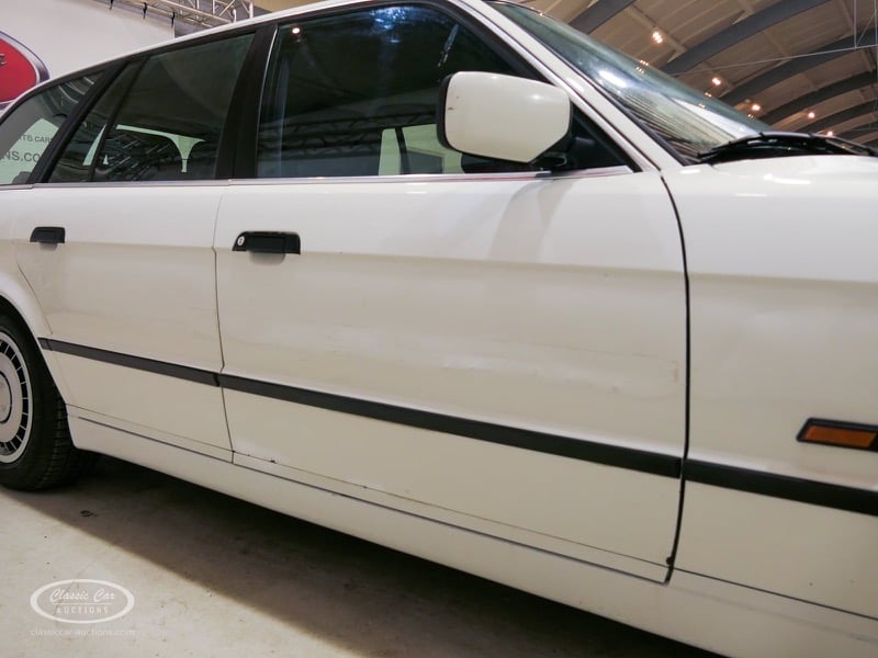 Cette BMW Série 5 Touring est en état de marche. La voiture a été initialement livrée neuve aux Pays-Bas et la lecture du compteur kilométrique est considérée comme logique par le RDW. Pour avoir une bonne image du lot, nous vous conseillons de venir le jour de la visite.