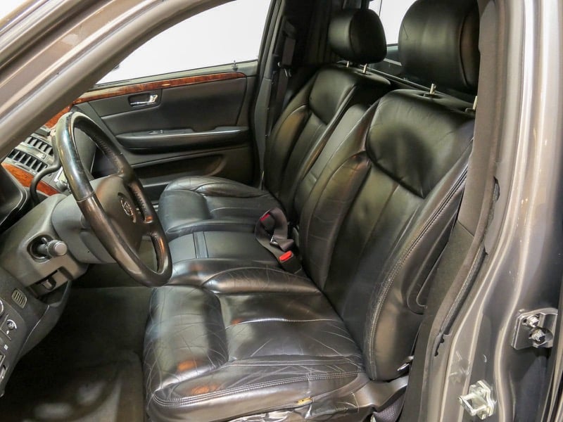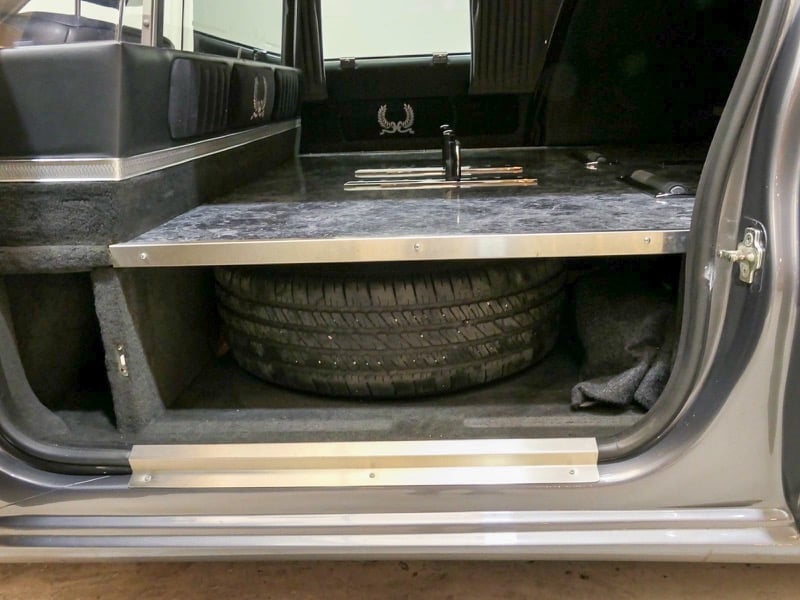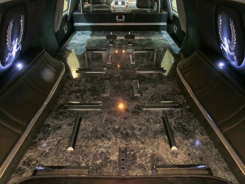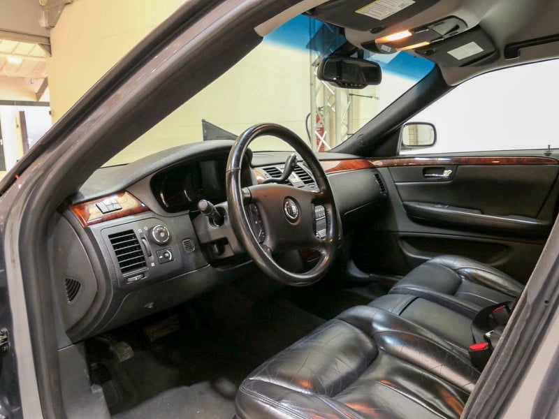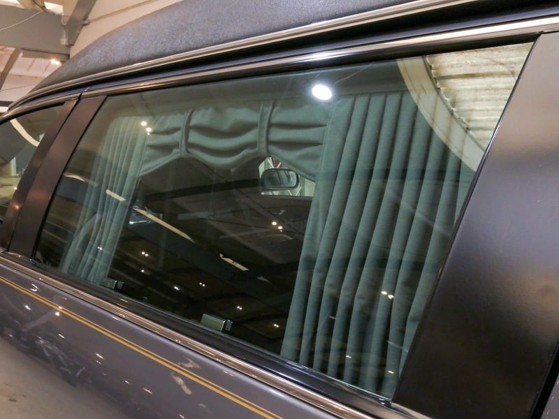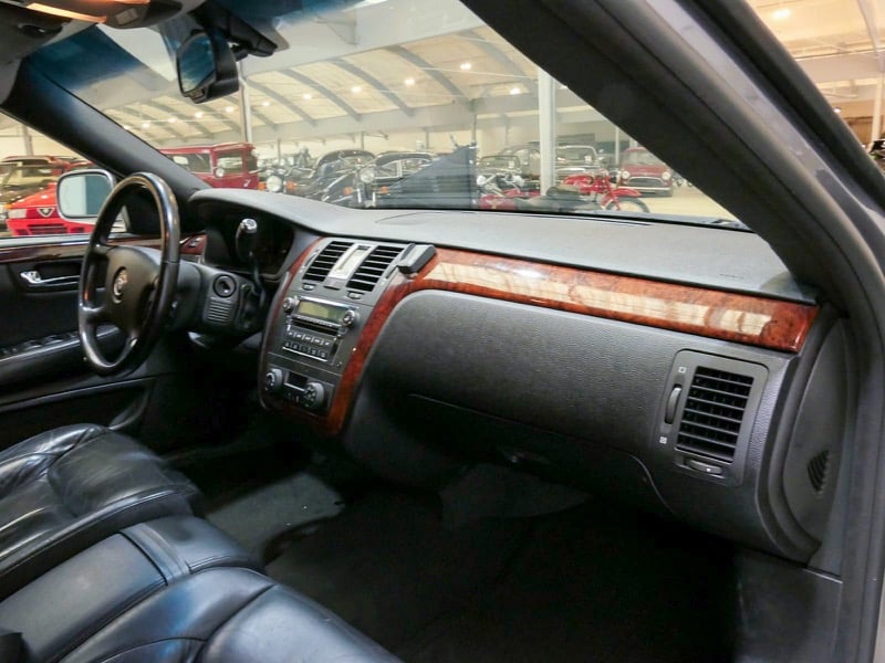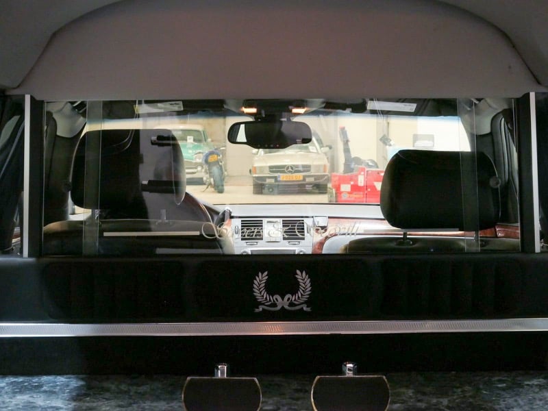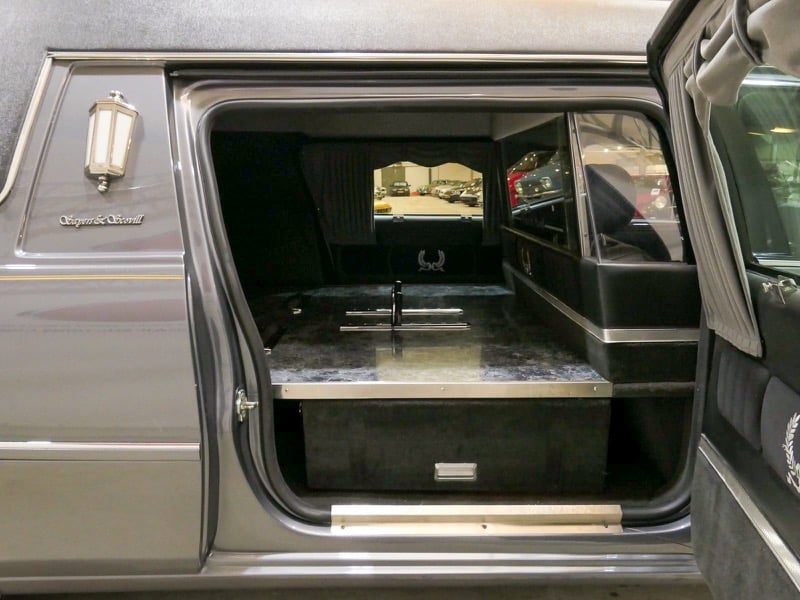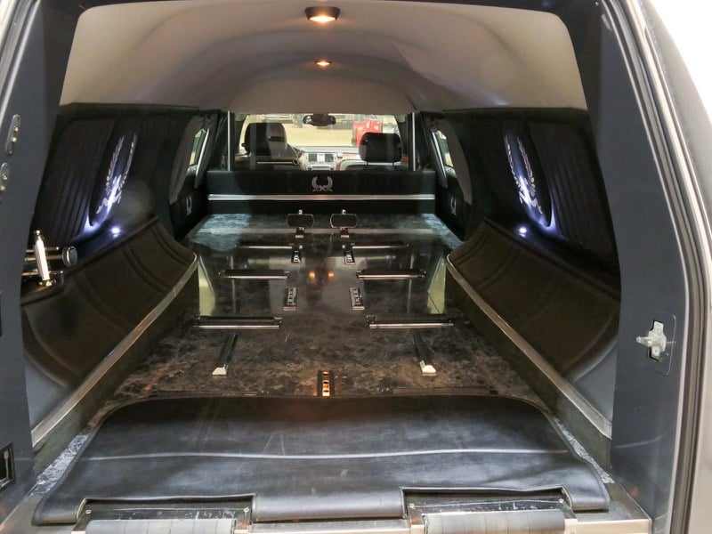 Ce corbillard Cadillac DTS 2006 a été construit par Sayers & Scoville. Un corbillard majestueux de couleur anthracite avec une construction en vinyle noir de la marque américaine Cadillac. Cette couleur grise s'appelle Academic Grey. Très élégant, majestueux et en raison de l'utilisation de la couleur moins traditionnelle qu'un véhicule noir. Ce corbillard est conçu comme un landaulet, ce qui signifie que le dos est fermé et que le cercueil est caché à la vue. L'intérieur est en cuir noir et un sol de couleur marbre. Pour avoir une bonne impression de la voiture, nous vous conseillons de venir à l'une des journées de visite.