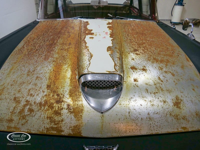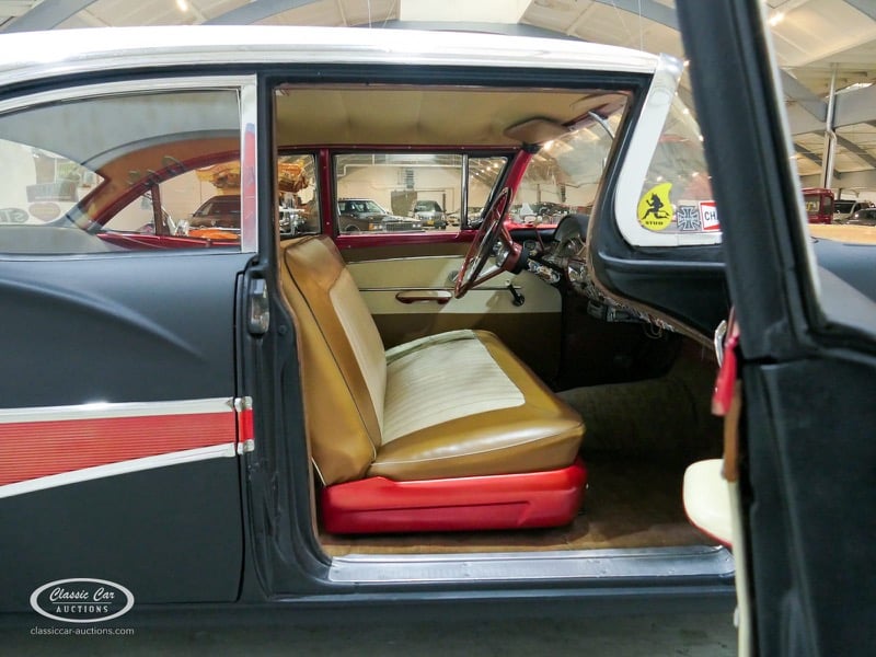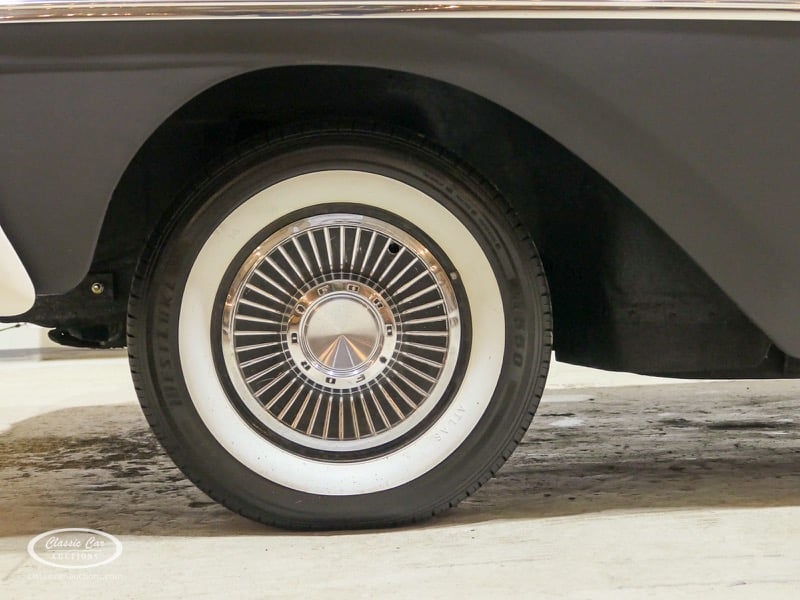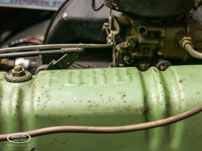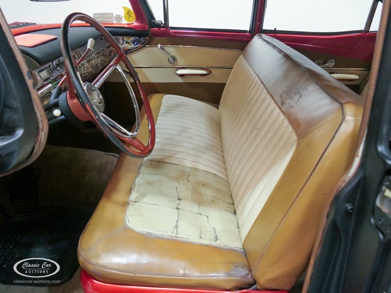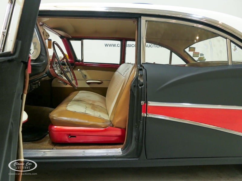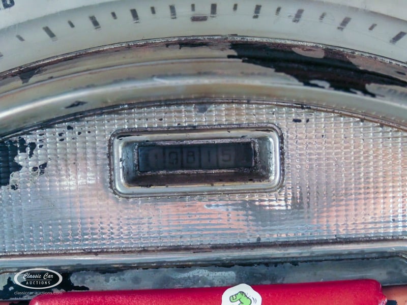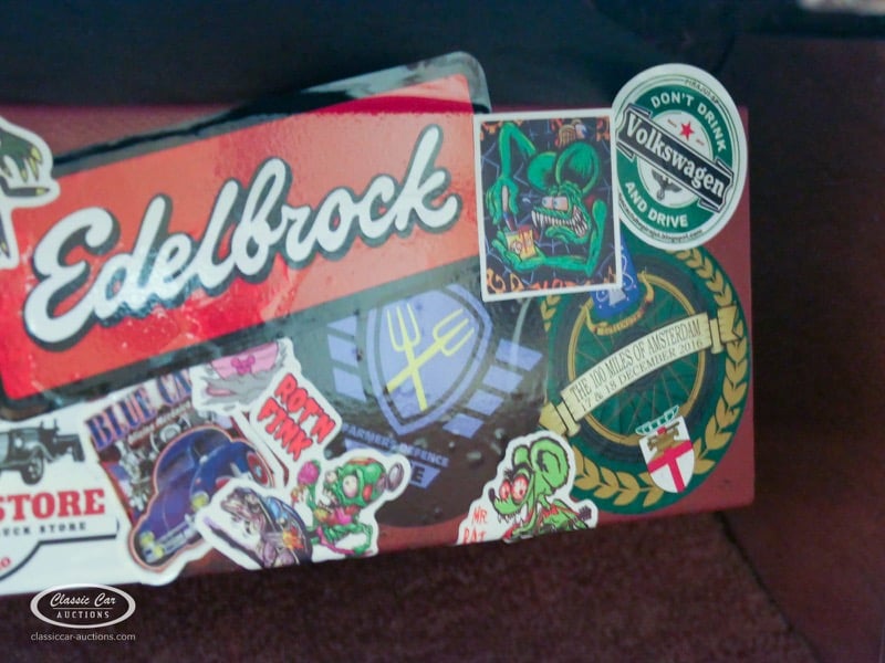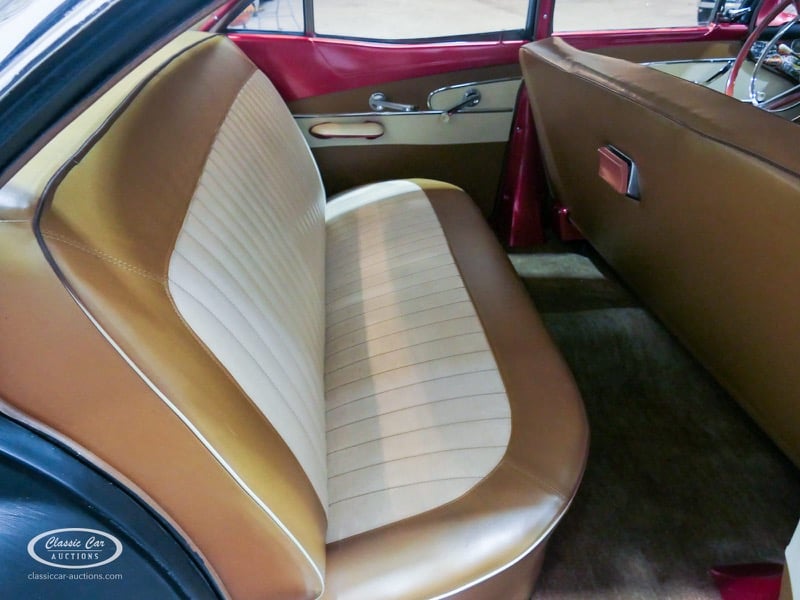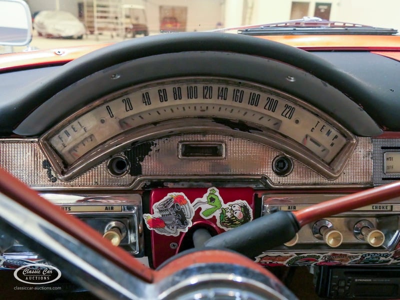 Cette Ford Fairlane est une apparence frappante. Il s'agit d'un modèle de 1958, immatriculé en 1959. Initialement livrée en rose tendre, la Ford a été modifiée dans le style Hot-Rod. Le Fairlane a un look robuste dû, entre autres, à la peinture noire mate, au capot aspect rouille et à de nombreux autocollants. Les pare-chocs sont fabriqués sur mesure. Le six cylindres de 3,3 L est équipé d'une installation GPL, d'un allumage électronique et d'une nouvelle batterie. De plus, un nouvel échappement a été installé, les freins ont été révisés et l'allumage, les bougies d'allumage, l'huile et les filtres ont été remplacés. La boîte de vitesses manuelle a trois vitesses. Le Fairlane est aux Pays-Bas depuis 1997 et est exonéré à la fois de la taxe de circulation et du MOT. Pour avoir une bonne image du lot, nous vous conseillons de venir le jour de la visite.