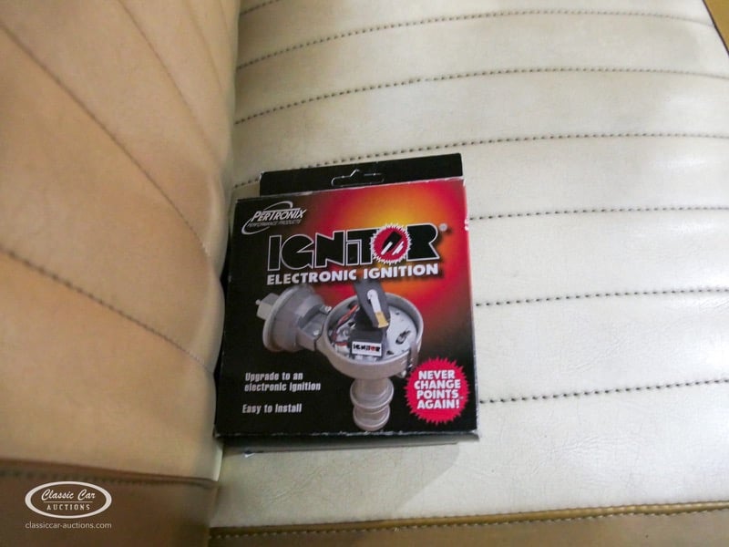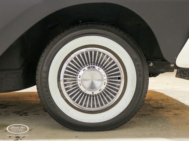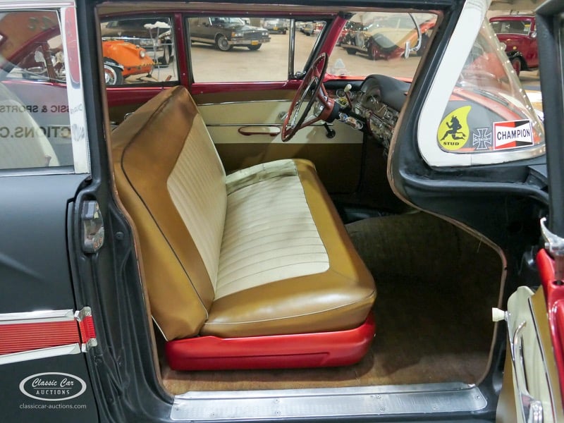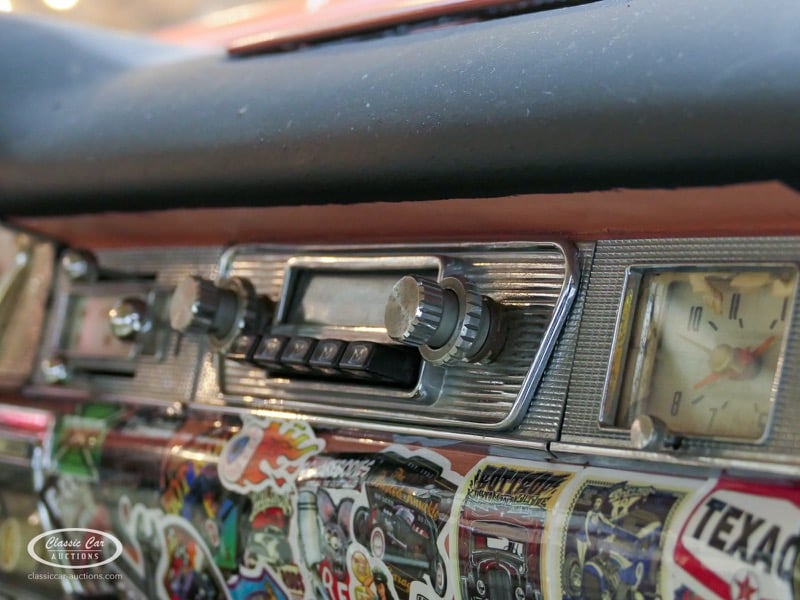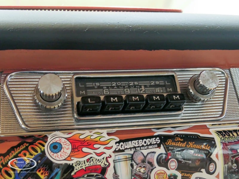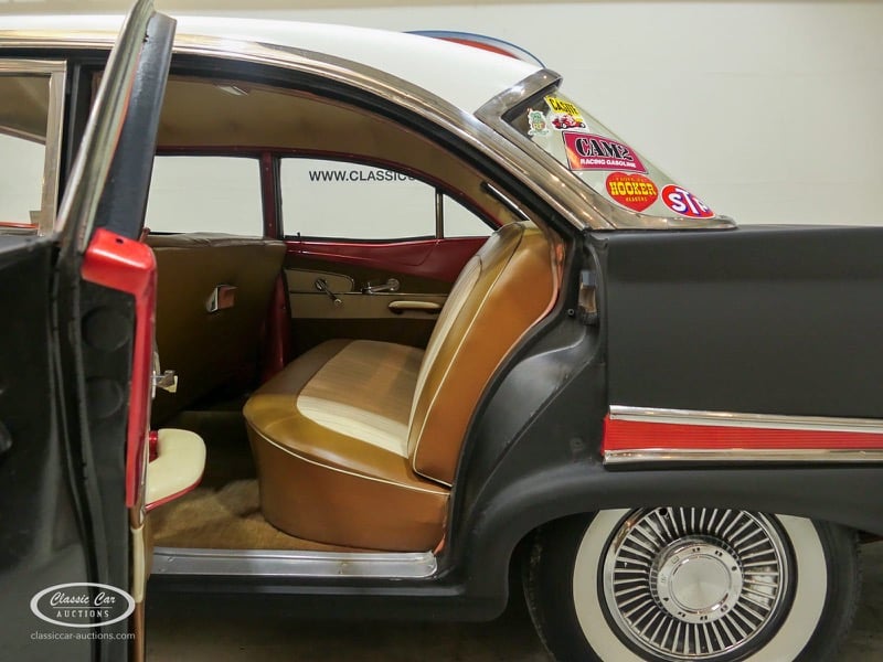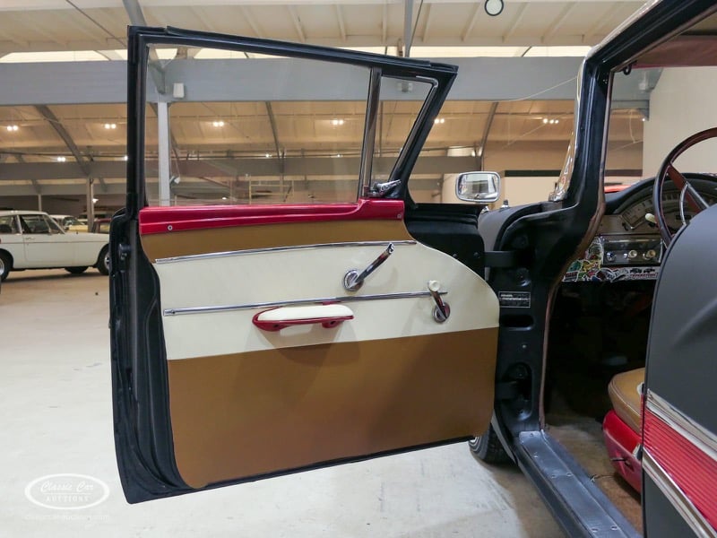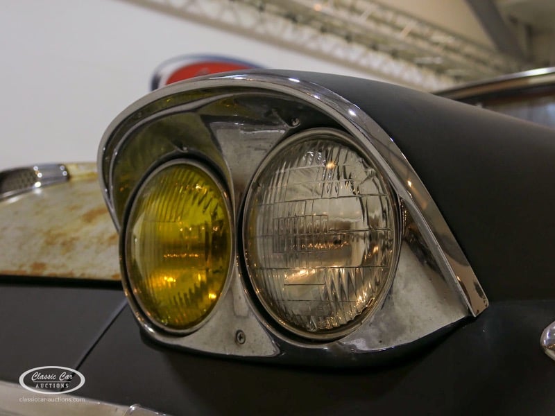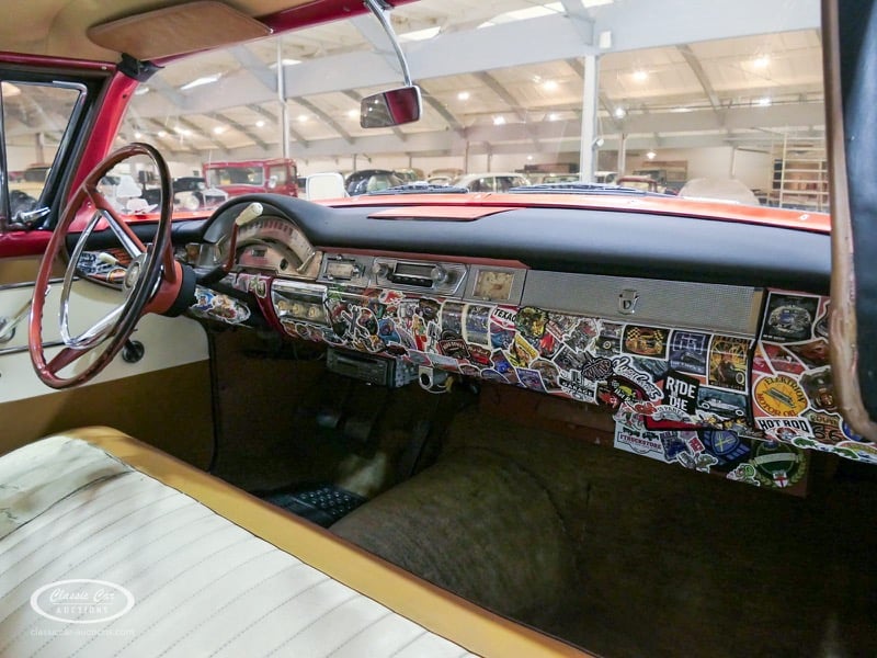 Cette Ford Fairlane est une apparence frappante. Il s'agit d'un modèle de 1958, immatriculé en 1959. Initialement livrée en rose tendre, la Ford a été modifiée dans le style Hot-Rod. Le Fairlane a un look robuste dû, entre autres, à la peinture noire mate, au capot aspect rouille et à de nombreux autocollants. Les pare-chocs sont fabriqués sur mesure. Le six cylindres de 3,3 L est équipé d'une installation GPL, d'un allumage électronique et d'une nouvelle batterie. De plus, un nouvel échappement a été installé, les freins ont été révisés et l'allumage, les bougies d'allumage, l'huile et les filtres ont été remplacés. La boîte de vitesses manuelle a trois vitesses. Le Fairlane est aux Pays-Bas depuis 1997 et est exonéré à la fois de la taxe de circulation et du MOT. Pour avoir une bonne image du lot, nous vous conseillons de venir le jour de la visite.