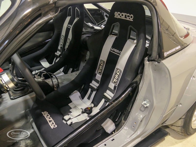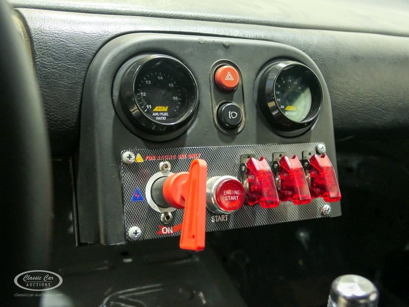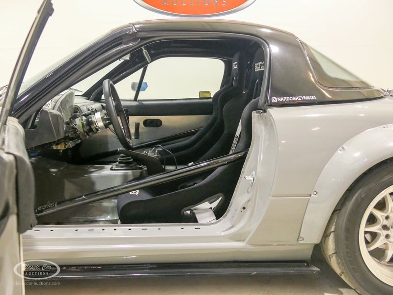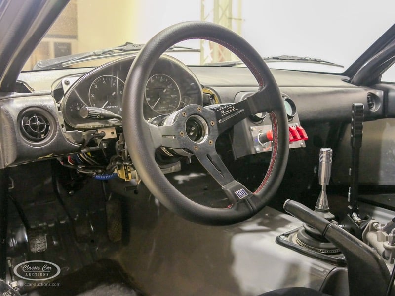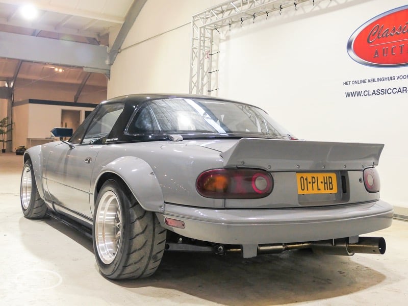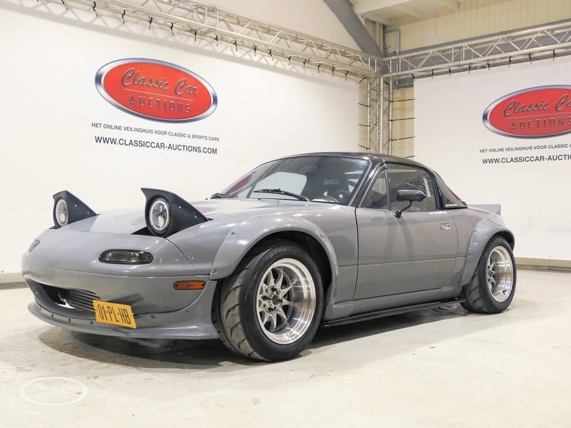 La Mazda MX-5 Miata offerte ici est une apparence spéciale à voir. Il s'agit d'une voiture américaine d'origine. Cependant, la voiture est aux Pays-Bas depuis de nombreuses années. Ces dernières années, la voiture a été complètement dépouillée et les planchers et les rails de châssis ont été remplacés. Un arceau de sécurité certifié FIA a été installé par Biesheuvel motorsport. Il est équipé d'un kit carrosserie large Rocketbunny, de jantes Ultralight UL48 avec pneus Toyo r888r, de sièges sprint Sparco, d'un harnais QSP et d'un frein à main hydraulique. Le moteur a également été reconstruit et comprend un collecteur turbo de course CX, une soupape de décharge, un turbo Garrett GT 2860 RS, un calculateur Speeduino, des injecteurs 450cc et un système d'échappement catback malien. Toutes ces spécifications font de la voiture une apparence spéciale et unique. Pour avoir une bonne image du lot, nous vous conseillons de venir le jour de la visite.