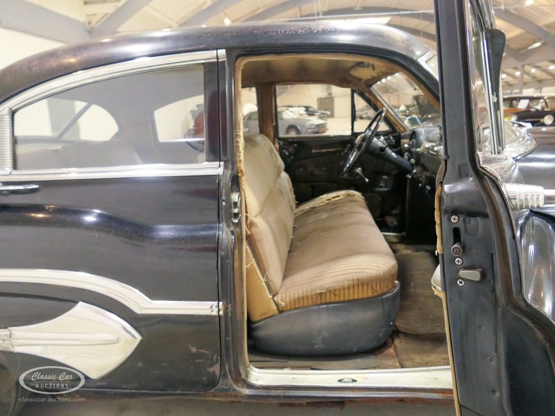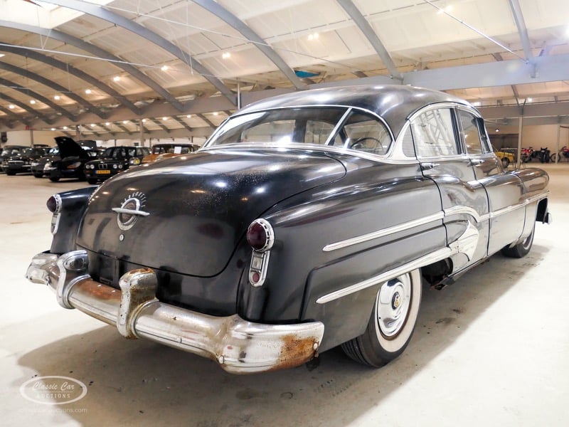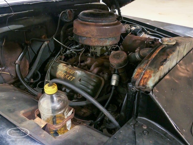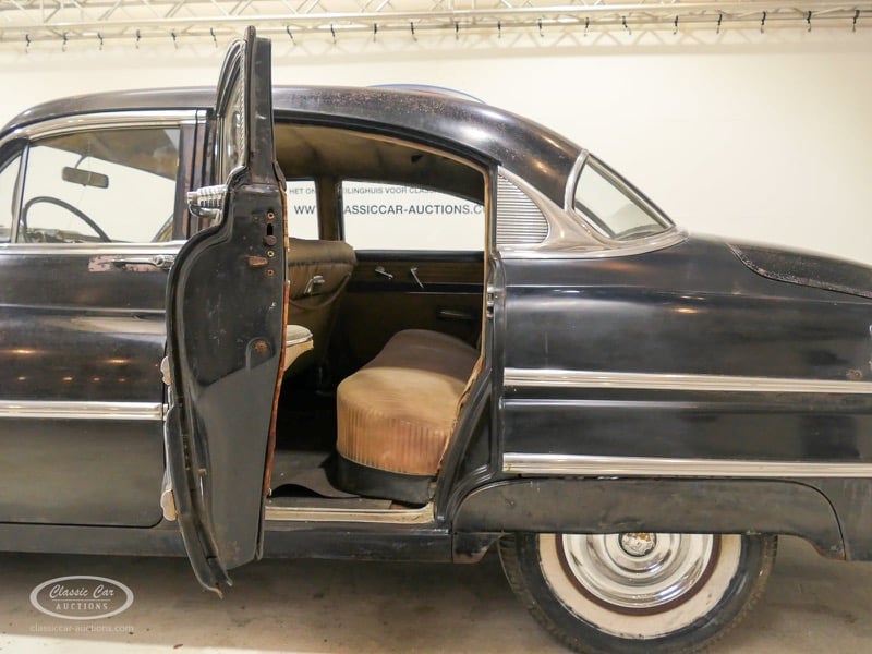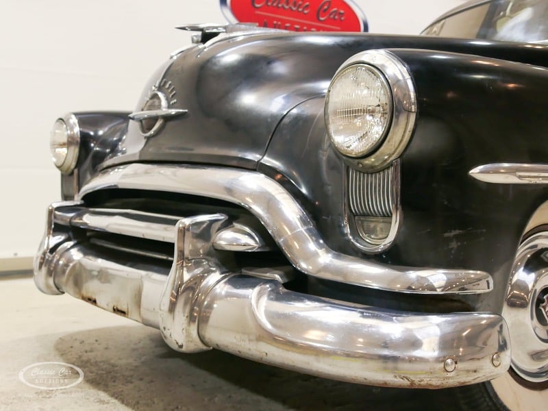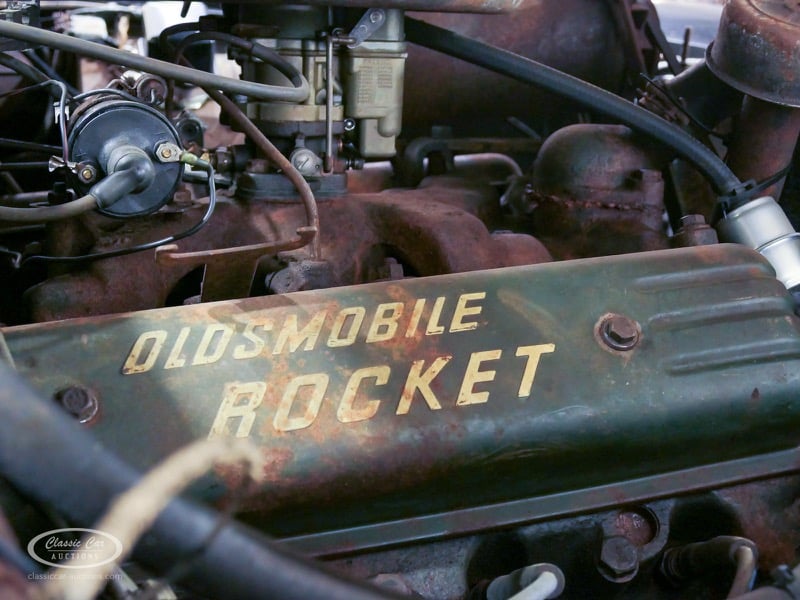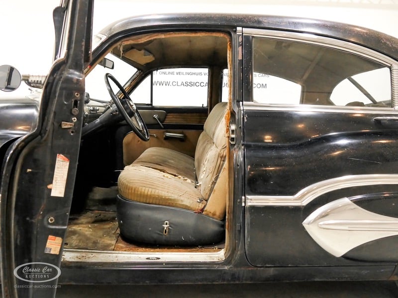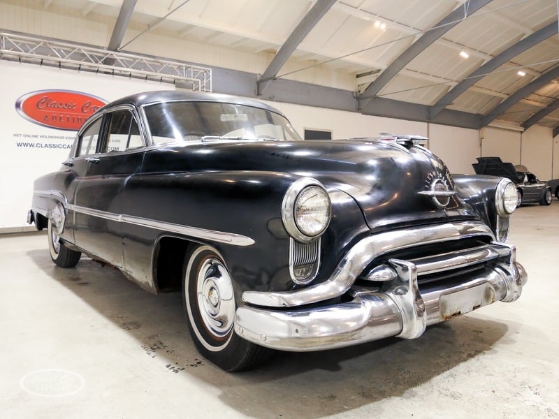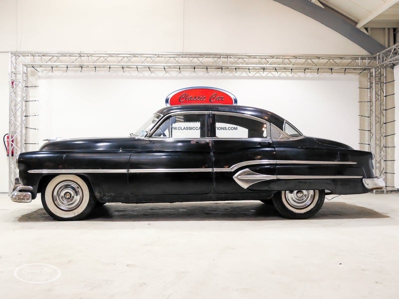 Aspect atypique, cette Oldsmobile 98 DS de 1951. L'exemplaire proposé ici est dans un état d'origine non restauré. Il est possible de laisser la voiture telle quelle ou de la restaurer davantage. Actuellement, le moteur tourne sur un by-pass. Un nouveau seuil (droit) est également inclus. Pour avoir une bonne image du lot, nous vous conseillons de venir le jour de la visite.