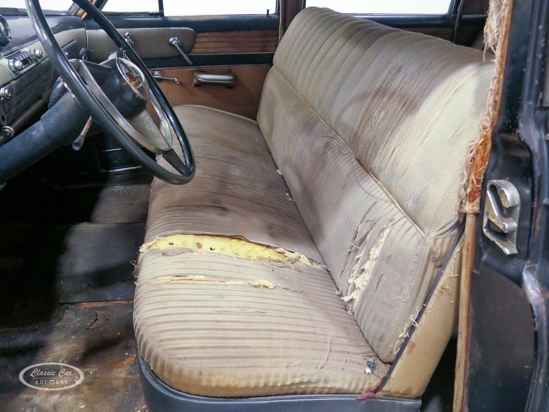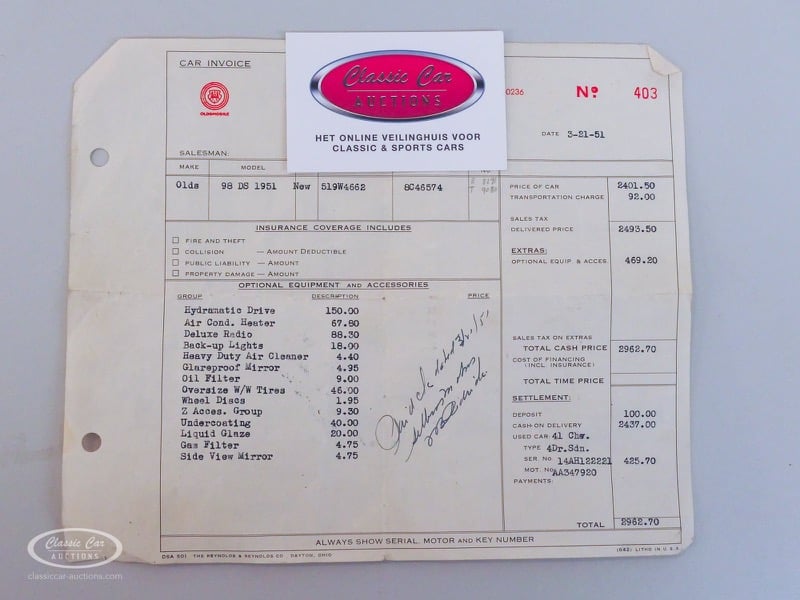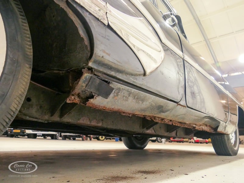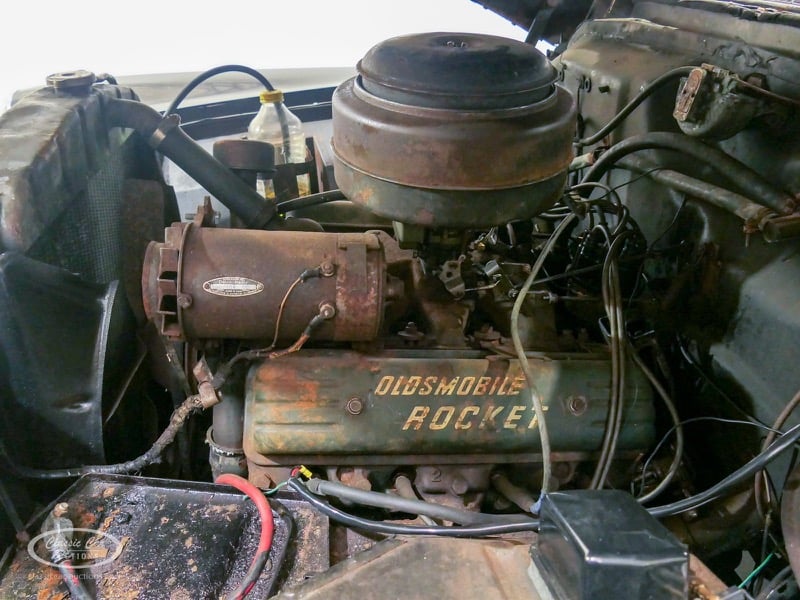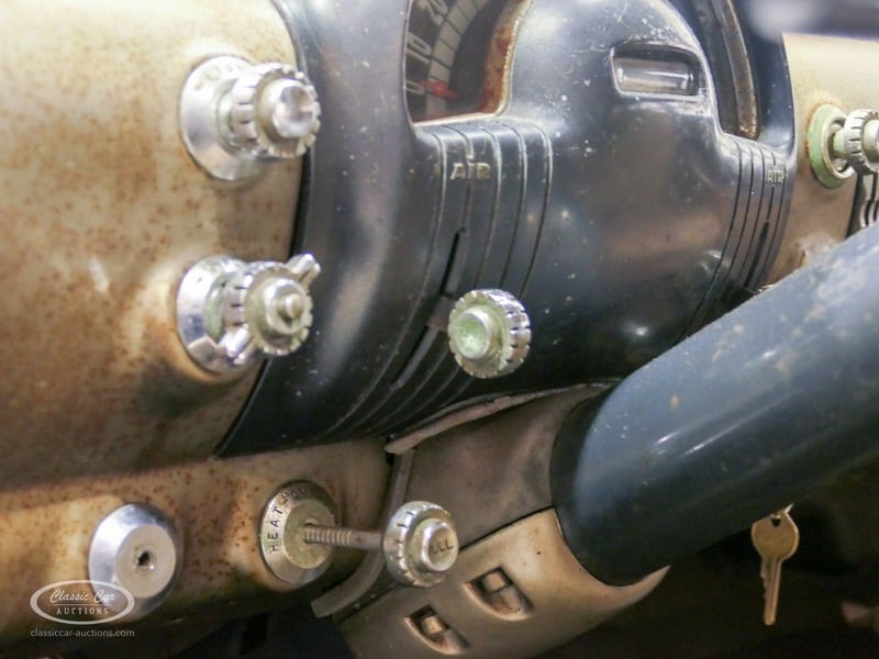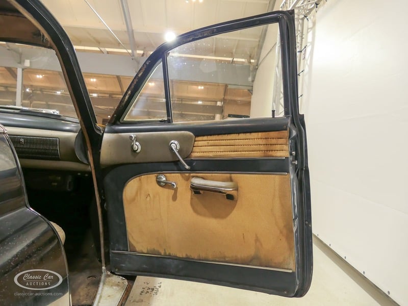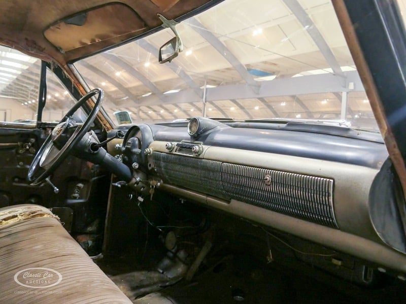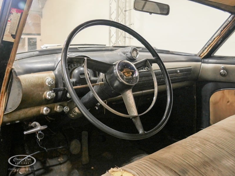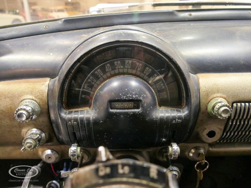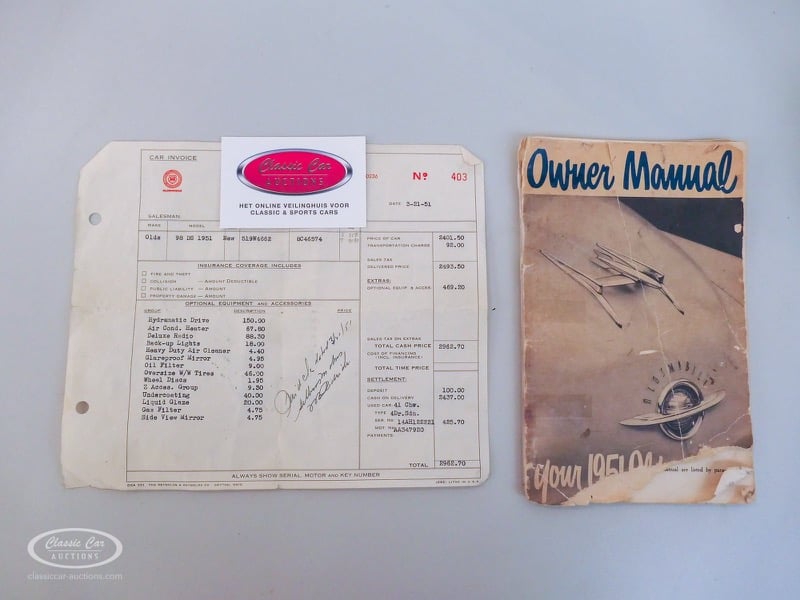 Aspect atypique, cette Oldsmobile 98 DS de 1951. L'exemplaire proposé ici est dans un état d'origine non restauré. Il est possible de laisser la voiture telle quelle ou de la restaurer davantage. Actuellement, le moteur tourne sur un by-pass. Un nouveau seuil (droit) est également inclus. Pour avoir une bonne image du lot, nous vous conseillons de venir le jour de la visite.