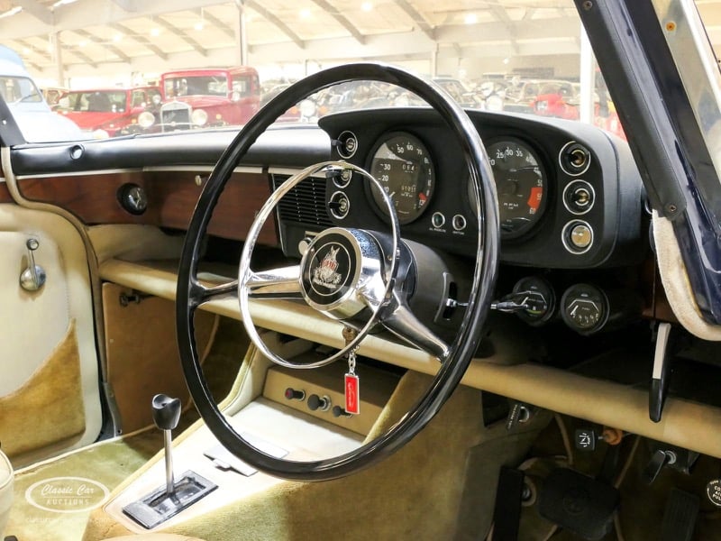Le Rover P5B 3.5 Coupé est le modèle le plus spécial de cette série. La reine Elisabeth, par exemple, avait ce type dans son écurie. Cette Rover est dans un état assez soigné. La voiture roule, mais pour autant que nous le sachions, la boîte de vitesses a besoin d'attention. Pour avoir une bonne impression de la voiture, nous vous conseillons de venir à l'une des journées de visite.