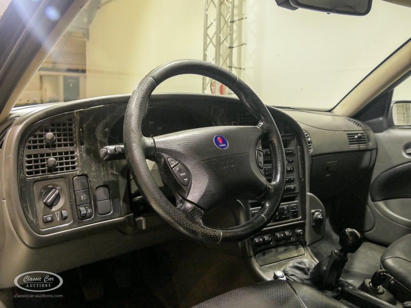 Le break Saab 9-5 proposé ici est en état de marche. Le MOT a expiré et la voiture donne divers messages d'erreur. Pour participer à la circulation, la voiture doit être contrôlée techniquement, ainsi que munie d'un nouveau MOT. Pour avoir une bonne image du lot, nous vous conseillons de venir le jour de la visite.