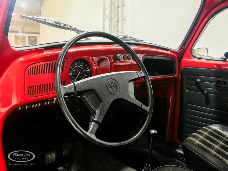 La voiture proposée ici est une Volkswagen Beetle livrée aux Pays-Bas d'origine. Avec sa couleur rouge, c'est un aspect frappant et reconnaissable. La voiture a un CT valide jusqu'au 11-08-2024. Pour avoir une bonne image du lot, nous vous conseillons de venir le jour de la visite.