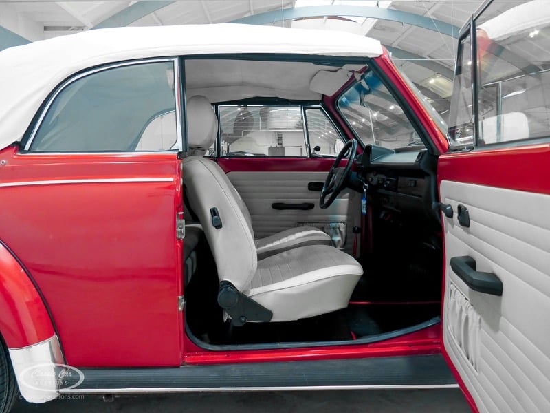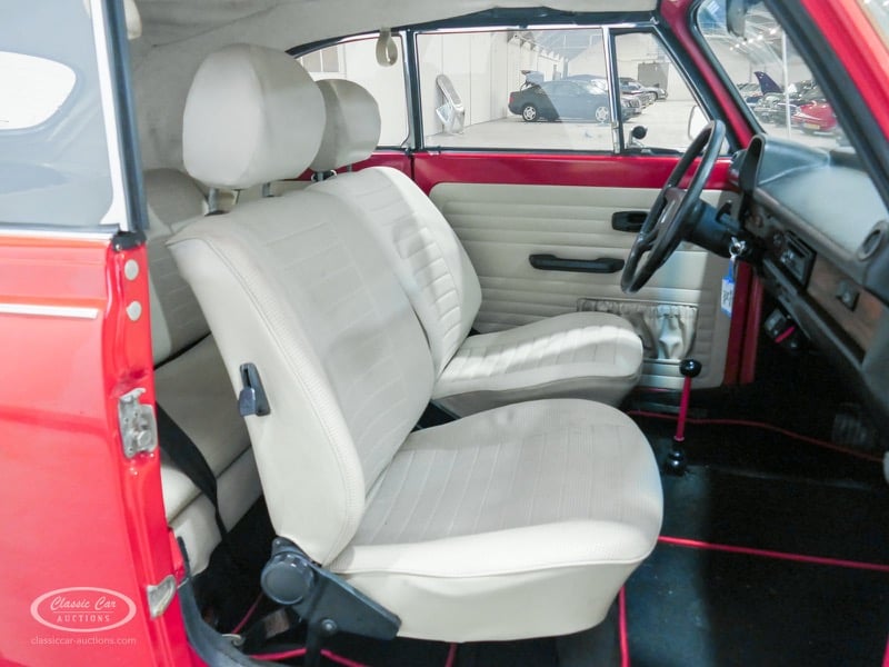 Cette Beetle Cabriolet est une apparence amusante et intéressante. L'intérieur et l'extérieur ont généralement l'air soignés. La voiture a une immatriculation néerlandaise, est en état de rouler et a un CT valide jusqu'au 16-01-2025. Le bloc moteur fait une nouvelle impression. Pour avoir une bonne image du lot, nous vous conseillons de venir le jour de la visite.